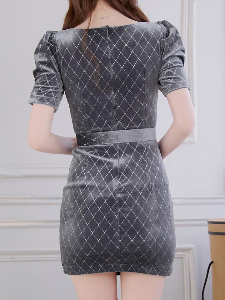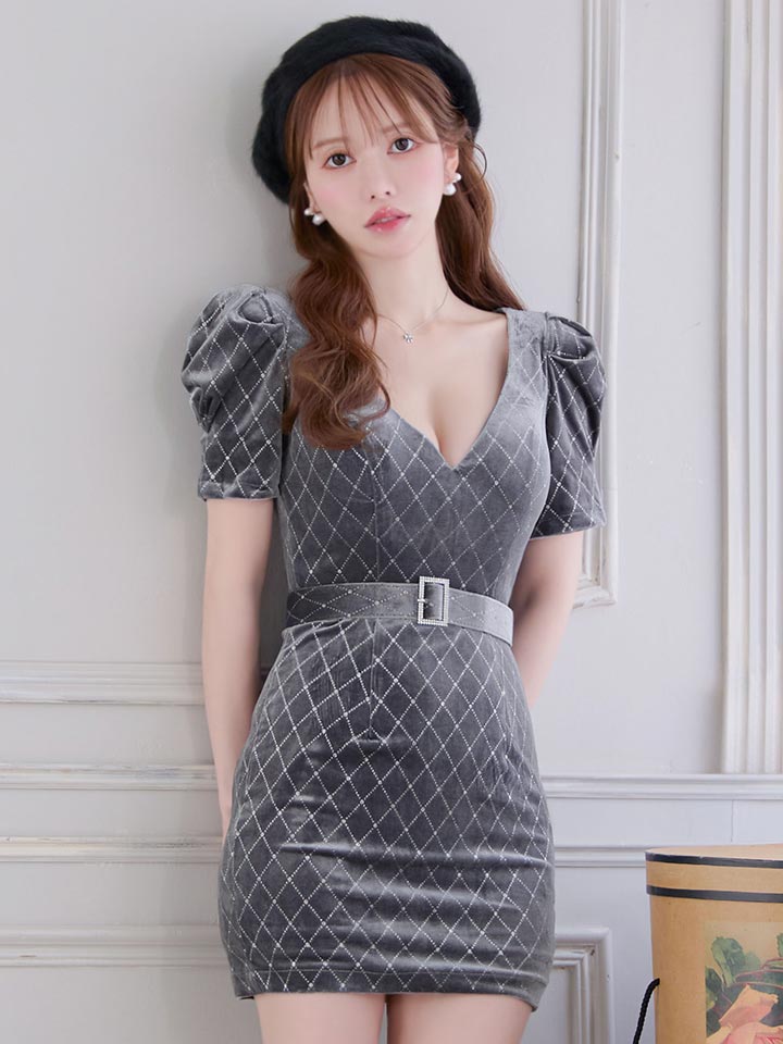 #グレー #ネクスト銀座 ゆめ #ゆりお着用 #ミニドレス/ミニ丈 #ベロア #チェック柄 #半袖,ショートスリーブ #谷間見せ(魅せ) #背中隠し(ブラOK) #タイト #上品・華やか・お姉さん系 #JEWELSトレンド