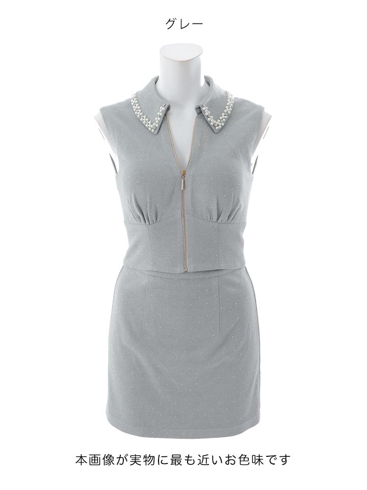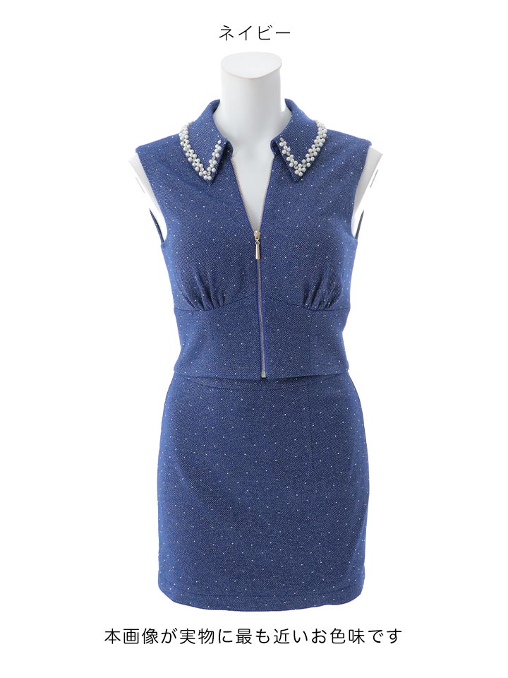 新色登場!パール襟フロントジップセットアップタイトミニドレス/キャバドレス【XS-XLサイズ/3カラー】【一部予約商品/12月下旬発送予定】[OF01] 【SB】dzwIA [3432SBdzwIA-251210-1]