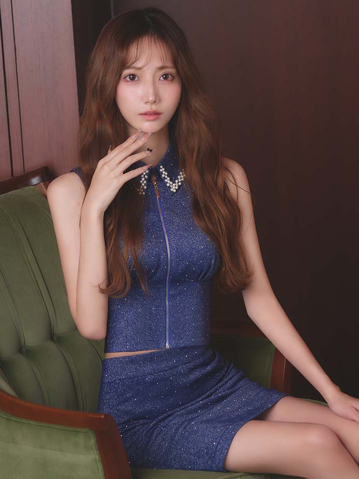 タイトスカートが美しいシルエットを作り、胸元ファスナーで谷間の見せ具合を自由に調整可能。