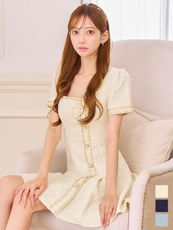 【即日発送】新色登場!スクエアネックプリーツスカートミニドレス/キャバドレス【XS-XLサイズ/3カラー】[HC02-X] 【SB】dzw