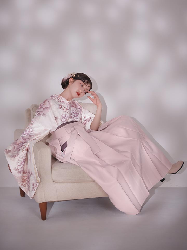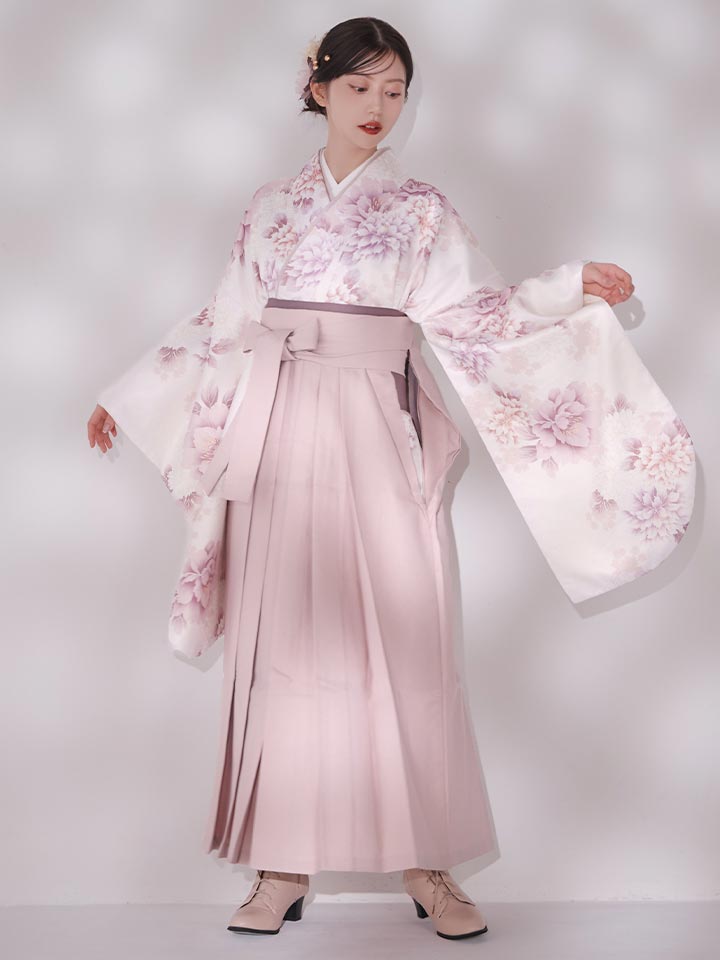 【予約商品 / 1月中旬発送予定】ピンク牡丹×菊 ペールピンク二尺袖着物【卒業袴3点セット 二尺袖着物/帯/袴】 [HR-102-ok-P-F-25EN-251220]