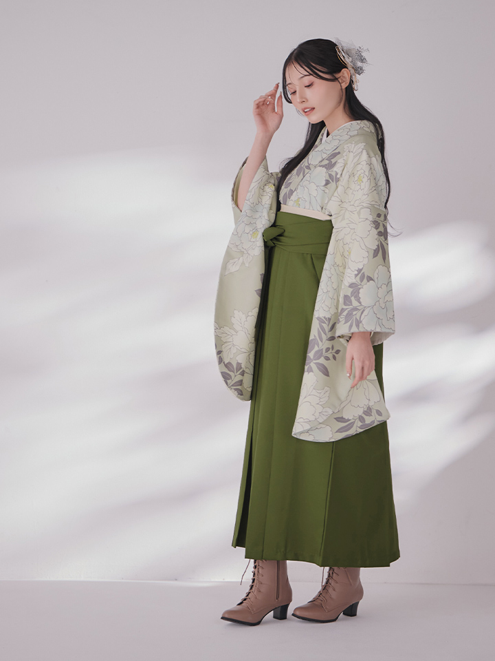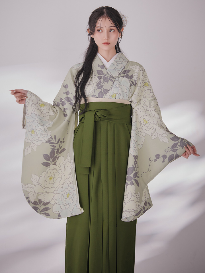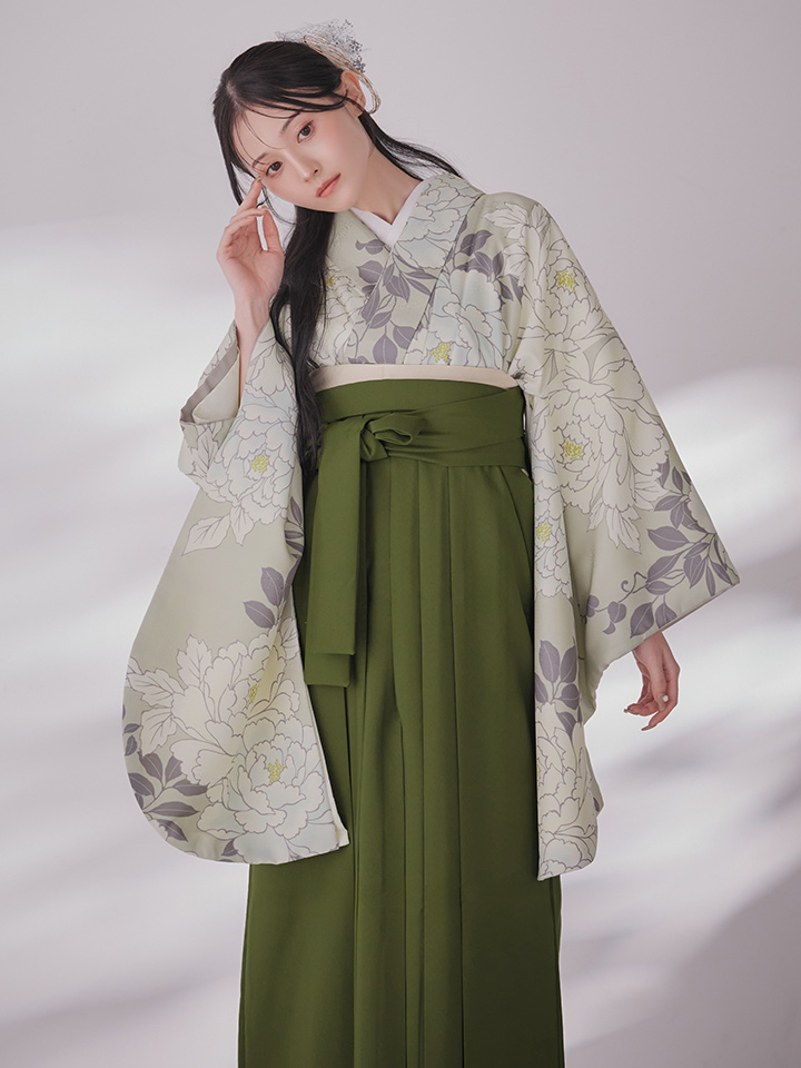 【予約商品 / 1月中旬発送予定】白牡丹 モカ二尺袖着物【卒業袴3点セット 二尺袖着物/帯/袴】
