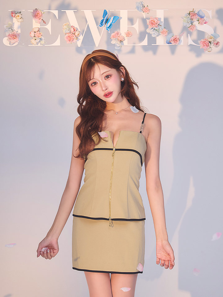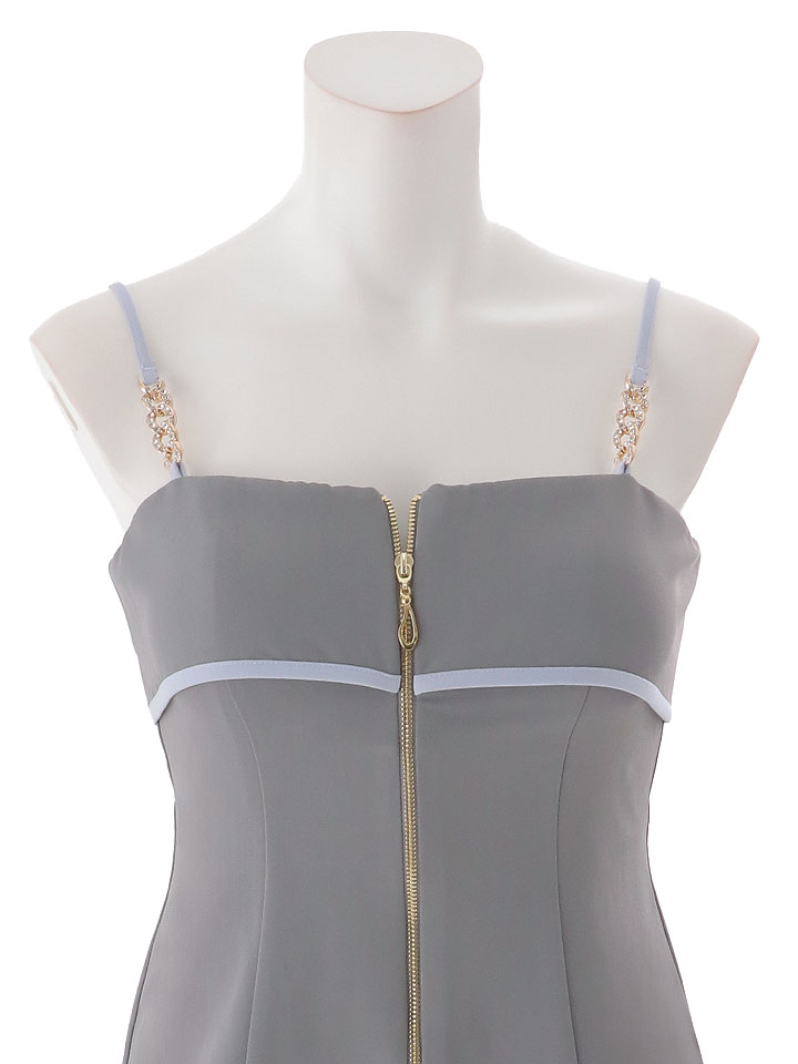 計算されたパイピングライン。ファスナーで色気を操る、攻めのミニドレス。