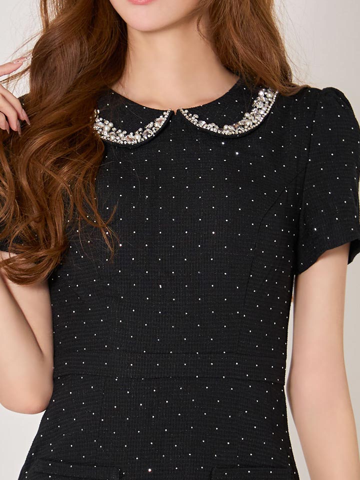 送料無料!ビジュー襟付プリーツスカートミニドレス/キャバドレス【XS-XLサイズ/2カラー】[OF01]【SB】dzwuIA [8451SBdzwuIA-251220-1]