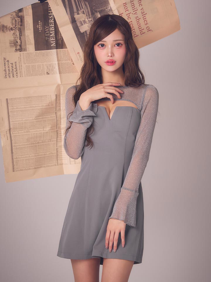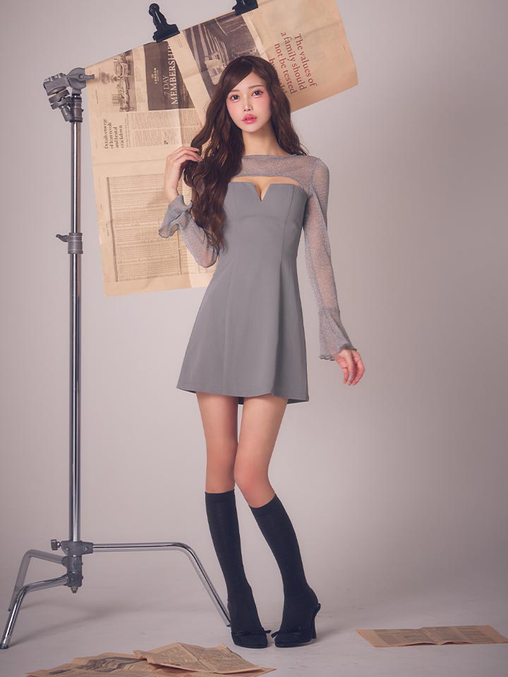 シアーな透け感に釘付け。谷間見せで色香を放つ、洗練セクシーミニドレス。