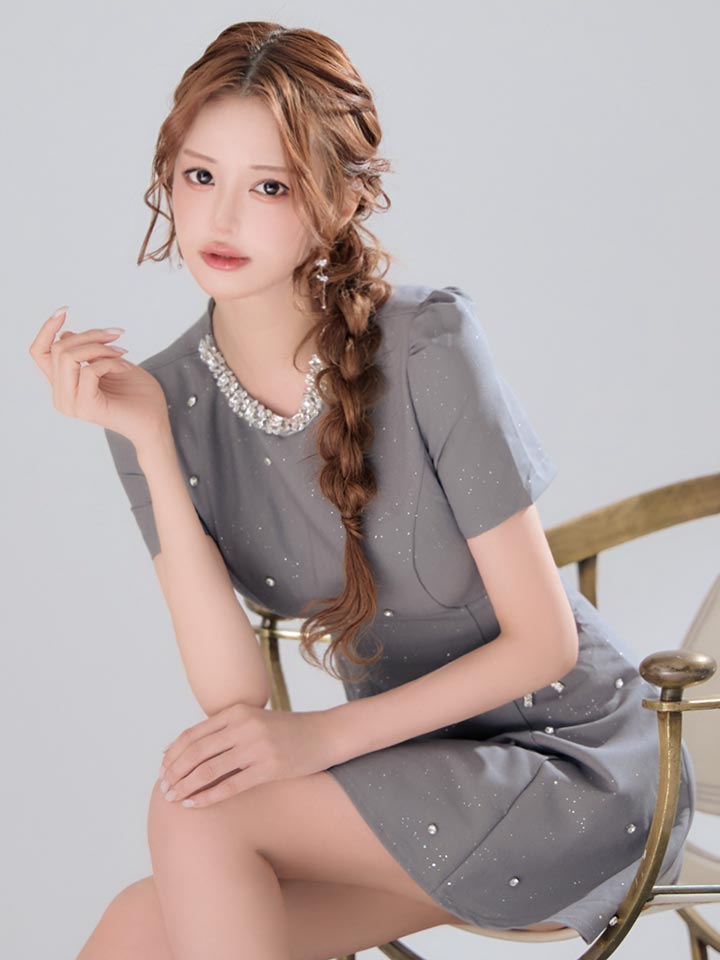 人気のビジューを散りばめたキラキラデザインが可愛い印象を作り上げる。