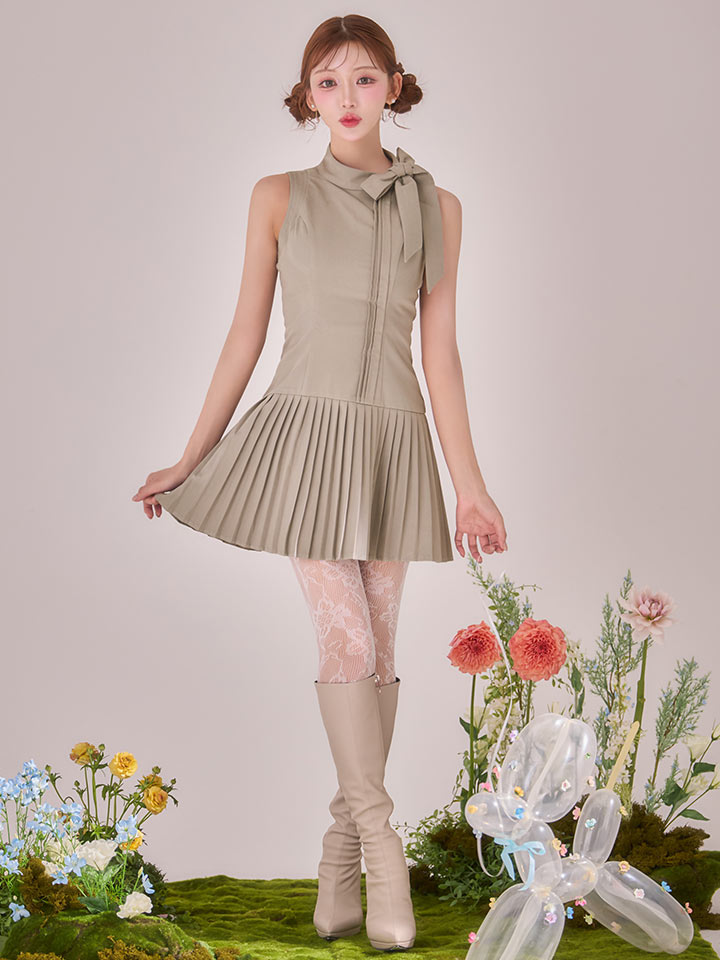 送料無料!リボンプリーツAラインワンピースドレス/キャバドレス【XS-Lサイズ/1カラー】【予約商品/2月中旬発送予定】[OF01]【SB】IA [8561SBIA-260209-1]