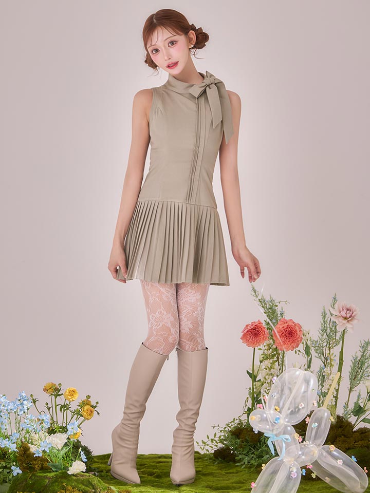 送料無料!リボンプリーツAラインワンピースドレス/キャバドレス【XS-Lサイズ/1カラー】【予約商品/2月中旬発送予定】[OF01]【SB】IA