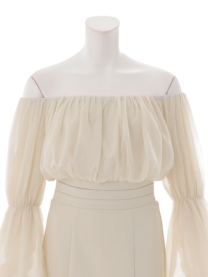 ウエストのシャーリングが自然にくびれを強調し、スタイルアップが叶う一枚です。