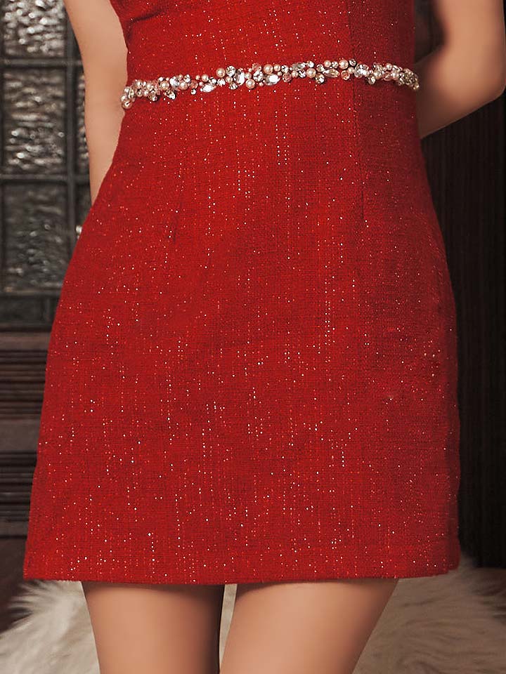 パールリボンツイードタイトミニドレス/キャバドレス【XS-XLサイズ/2カラー】[OF01A] 【SB】dzpu [3177SBdzpu-251224-1]
