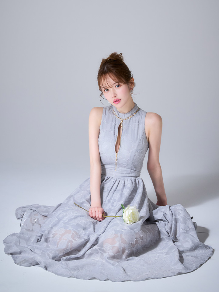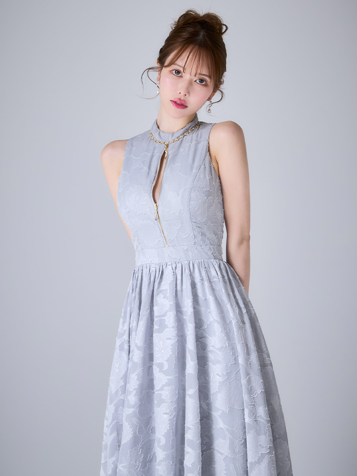【sifeel/シフィール】フラワー刺繍ジップフレアワンピース/キャバドレス【S-Lサイズ/1カラー】[OF03]【IM】