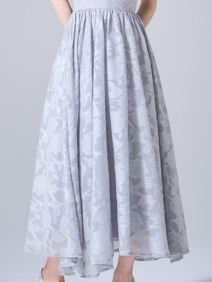 ふんわりと広がるフレアスカートが、歩くたびにドラマティックな余裕を感じさせます。