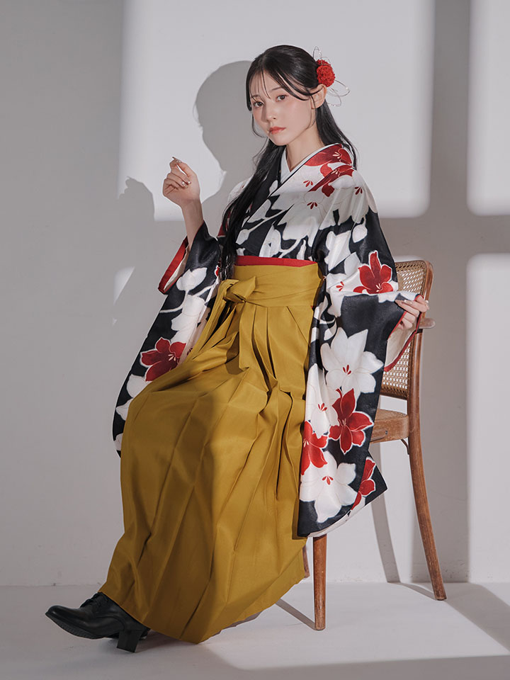 黒 ブラック 赤 レッド 白 ホワイト 百合 ユリ イエロー袴 黄色袴 マスタード袴 マスタード