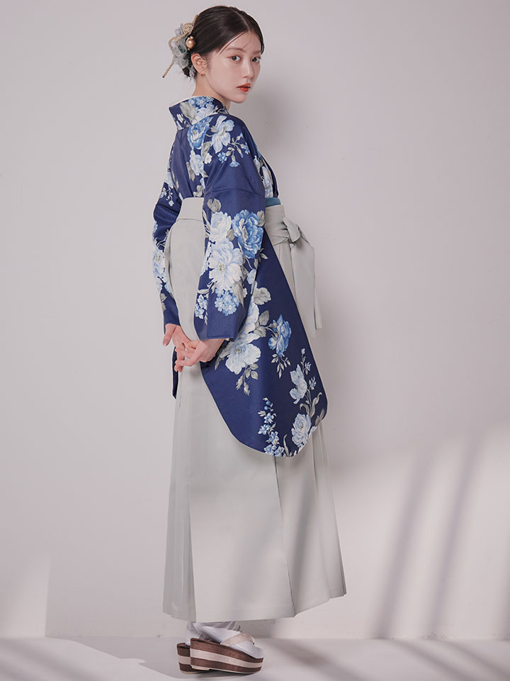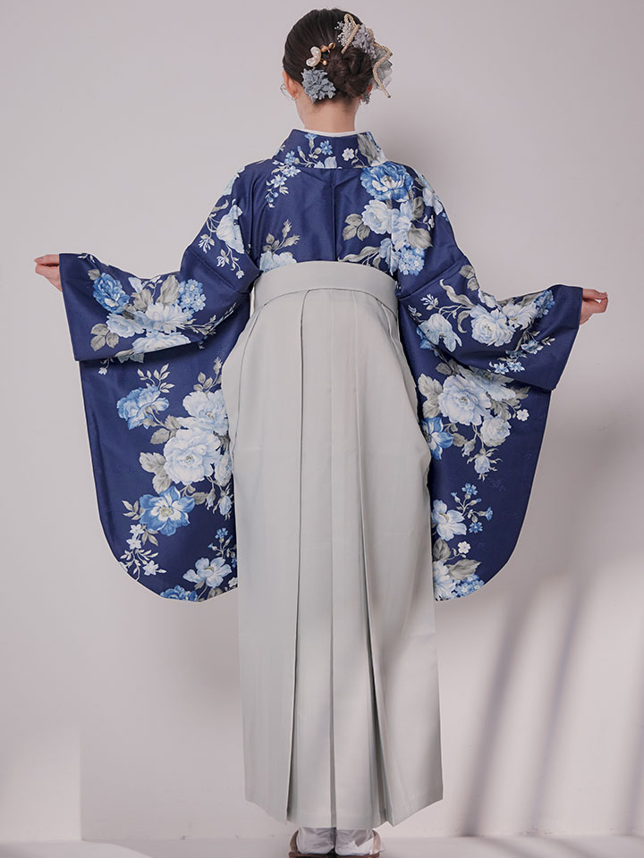 青 ブルー フラワーブーケ グレー袴 ライトグレー袴 灰色袴