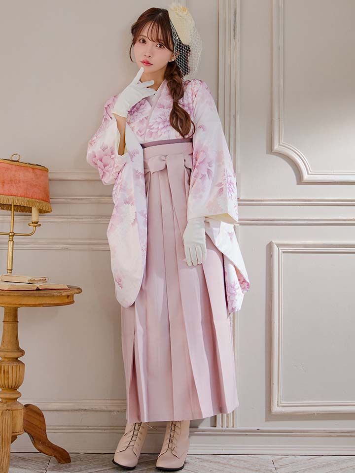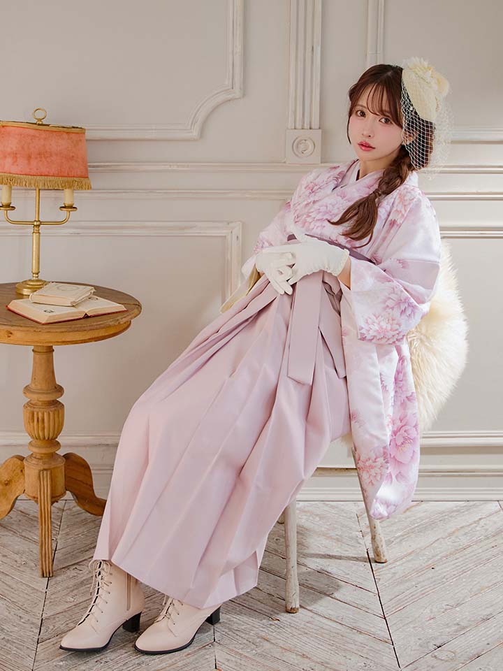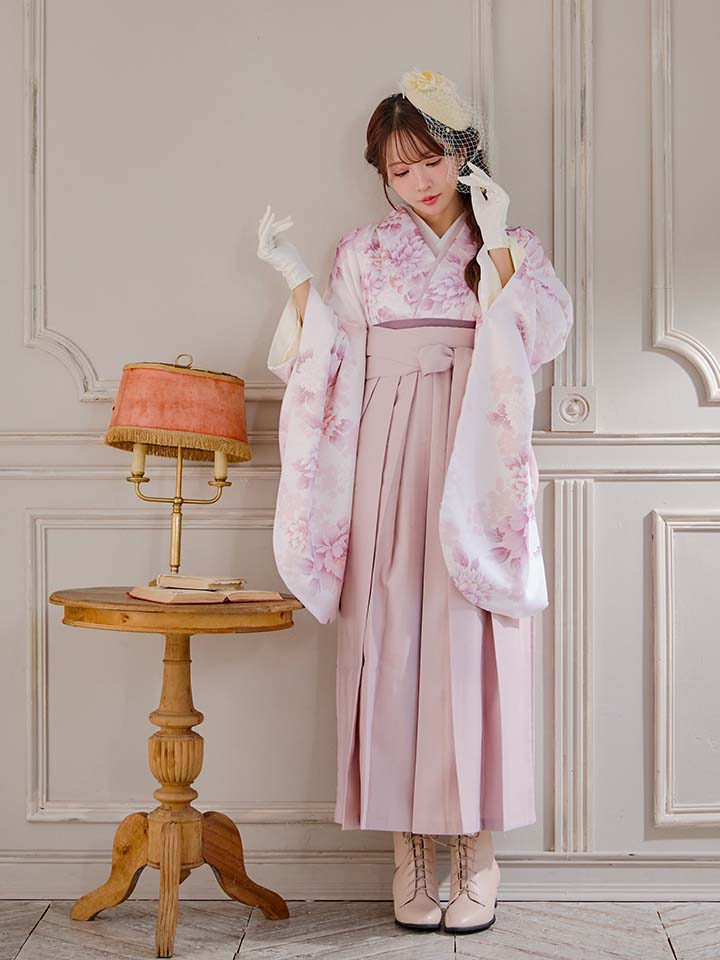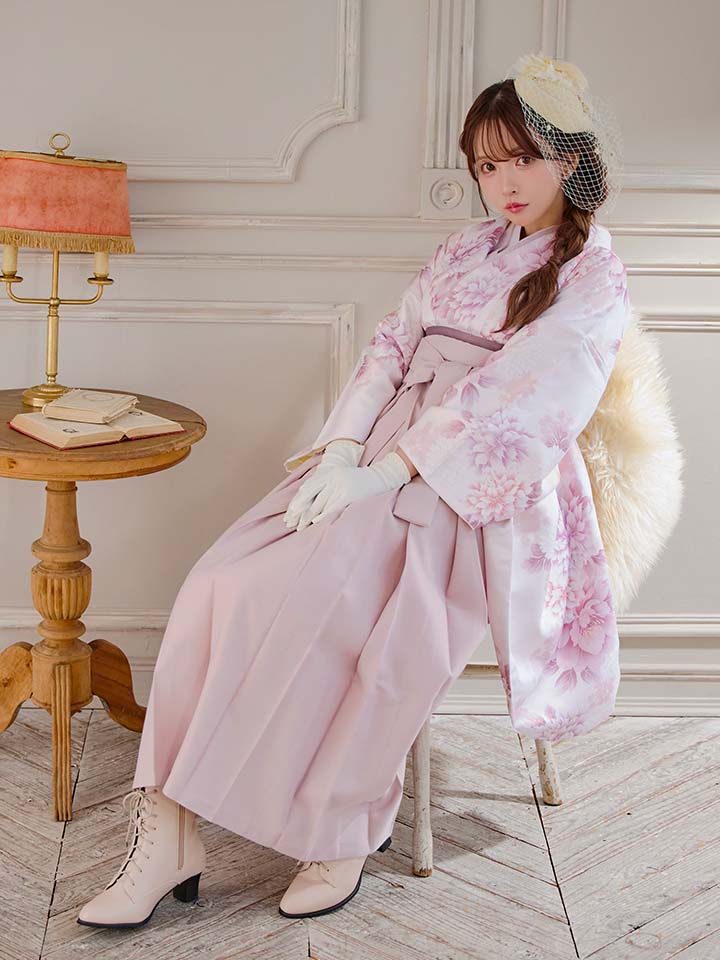【予約商品 / 1月中旬発送予定】ピンク牡丹×菊 ペールピンク二尺袖着物【卒業袴3点セット 二尺袖着物/帯/袴】 [HR-102-ok-P-F-25MY-251229]