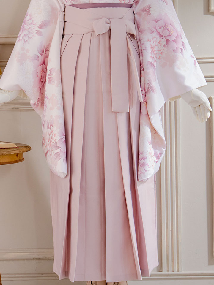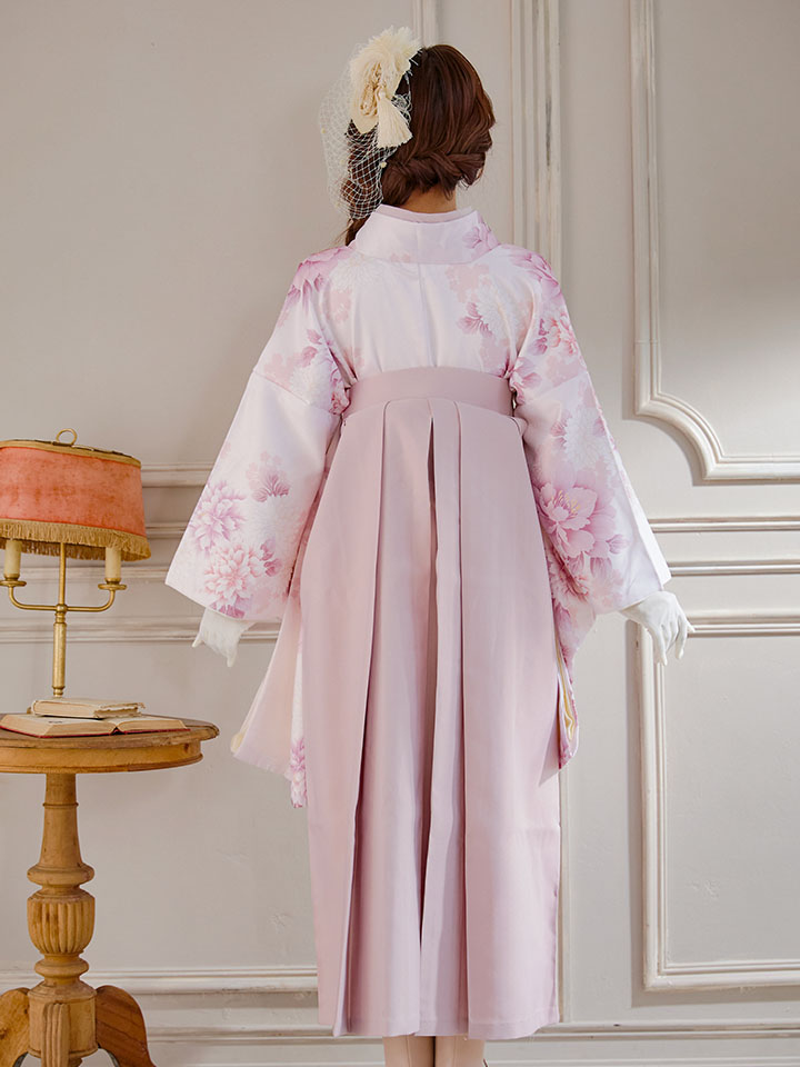 【予約商品 / 1月中旬発送予定】ピンク牡丹×菊 ペールピンク二尺袖着物【卒業袴3点セット 二尺袖着物/帯/袴】