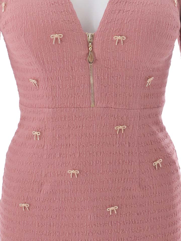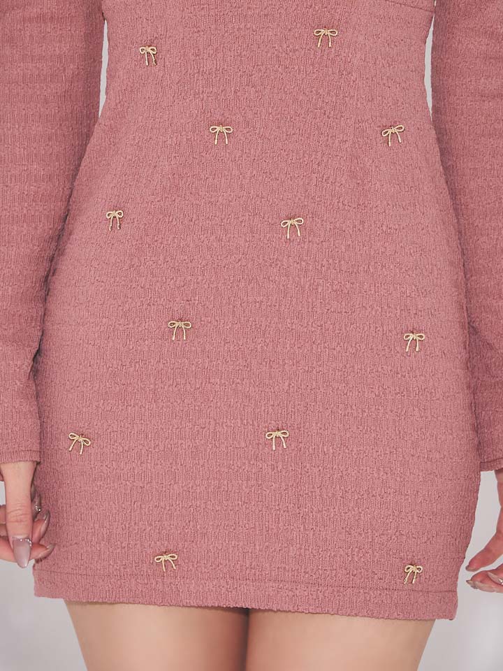 甘いディテールを詰め込んだあざとセクシーな長袖タイトミニドレス。