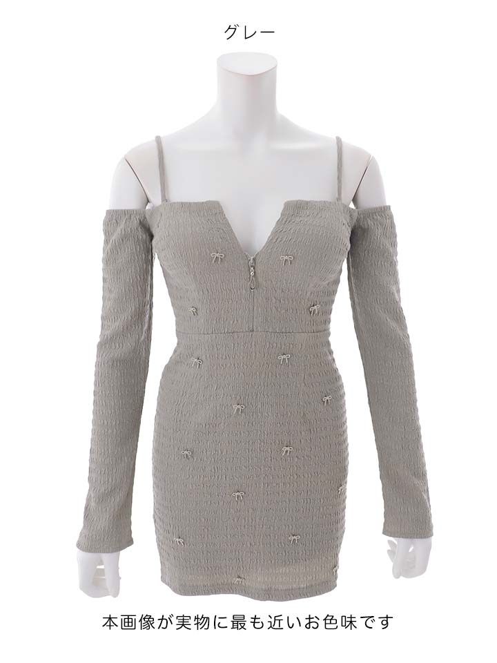 オフショルロングスリーブタイトミニドレス/キャバドレス【XS-Lサイズ/2カラー】[OF03]【YN】dzwBF [5840YNdzwBF-260121-1]