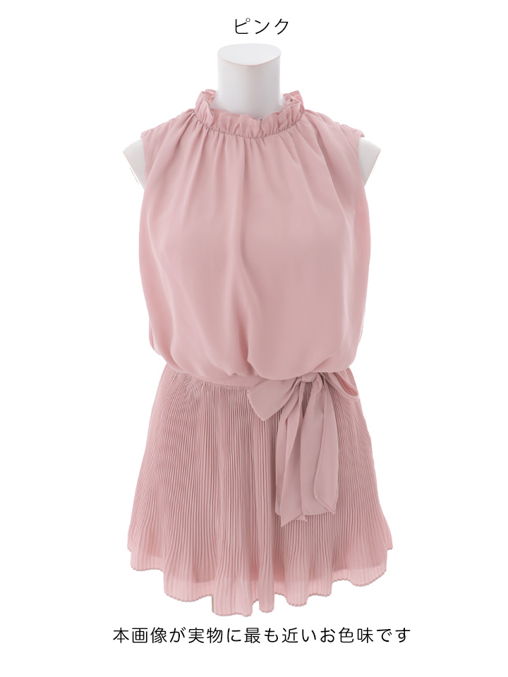 ウエストリボンシフォンプリーツセットアップドレス/キャバドレス【XS-Mサイズ/2カラー】[OF03]【YN】dzqvBF