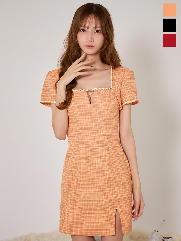 スクエアネックチェーンツイードミニドレス/キャバドレス【XS-XLサイズ/3カラー】[OF03] 【YN】dzw [5012YNdzw-251227-1]
