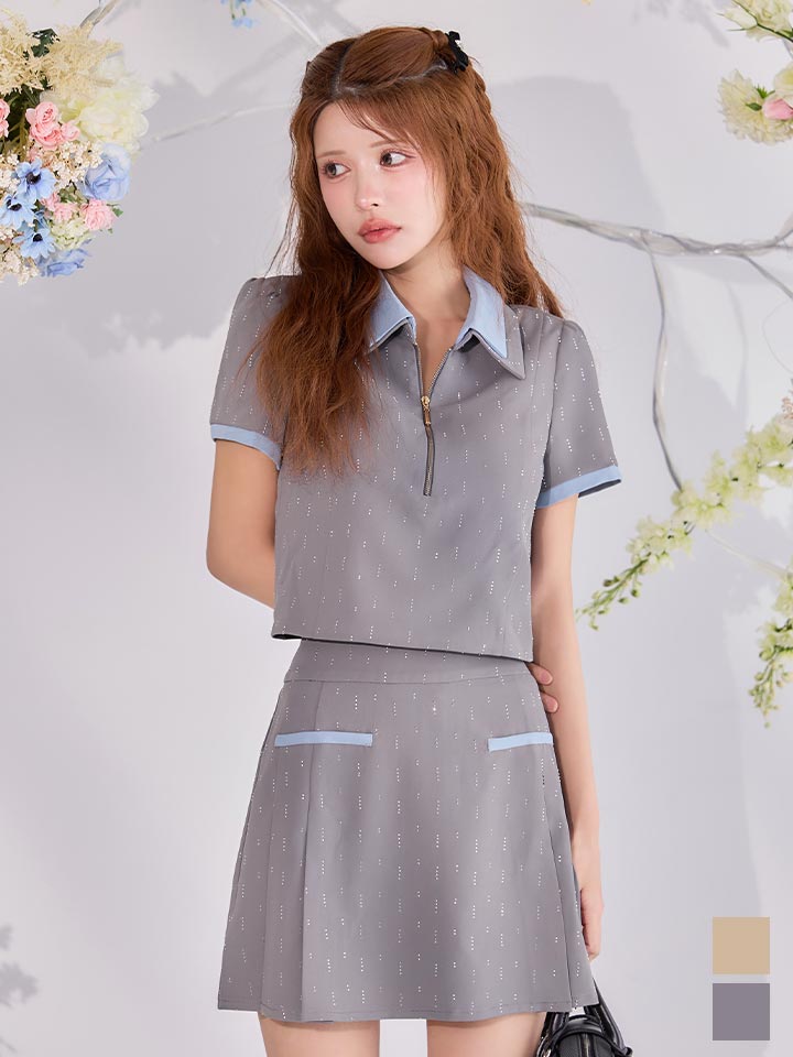 送料無料! 襟付きバイカラーセットアップミニドレス/キャバドレス【XS-Lサイズ/2カラー】【予約商品/1月下旬発送予定】[OF04]【SB】dzwvIA [3571SBdzwvIA-260101-2]