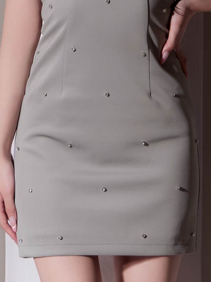 シアー素材×ビジューの組み合わせが目を引くキャミソールミニドレス。