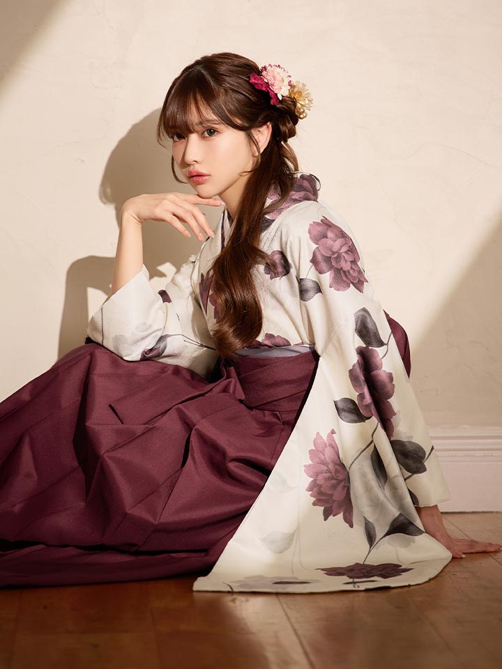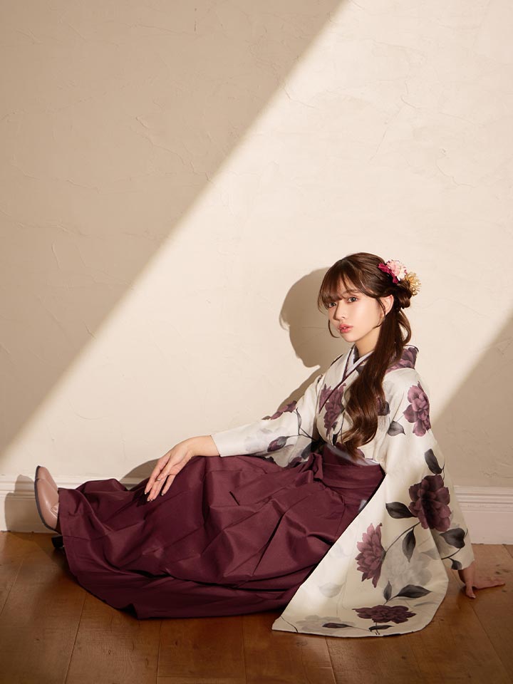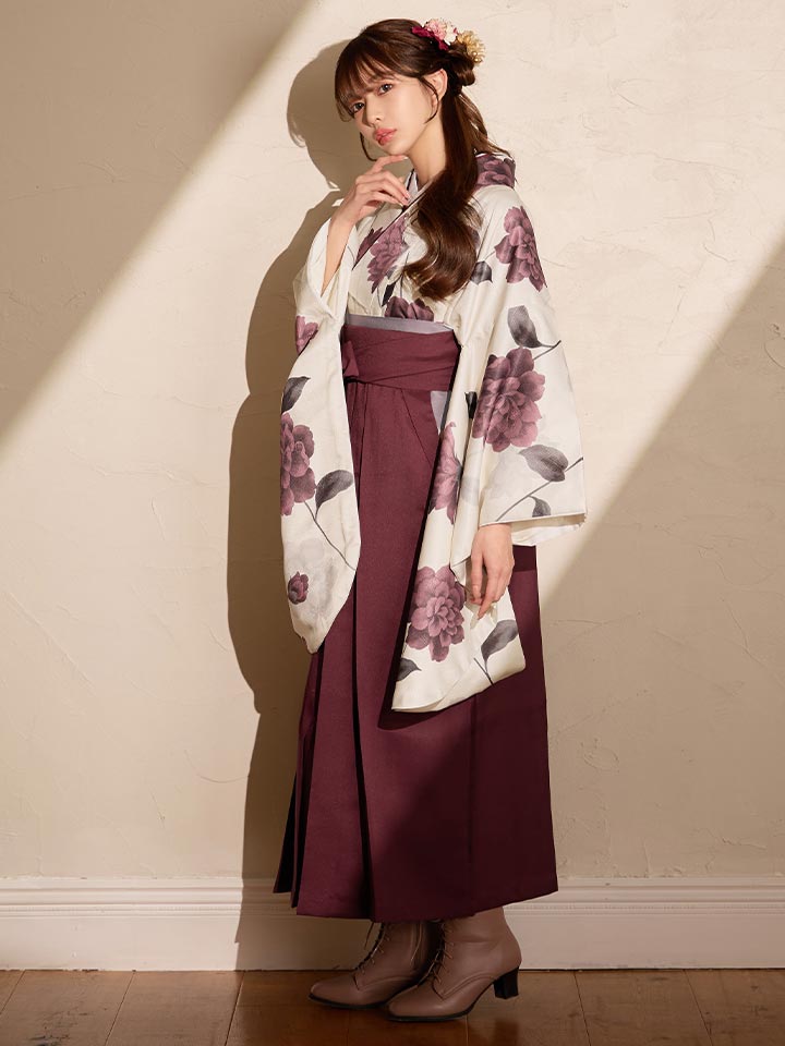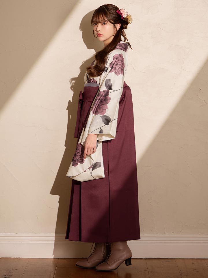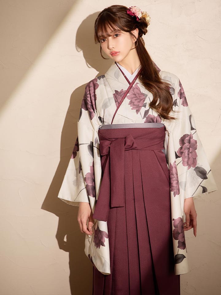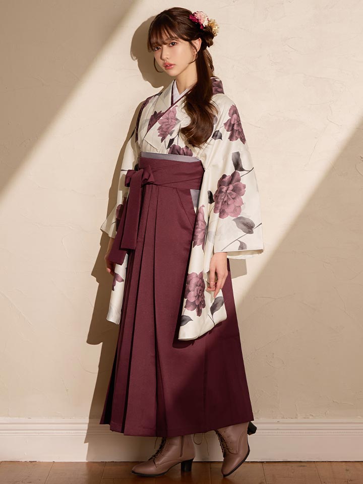 【即日発送】レッドカーネーション ベージュ二尺袖着物【卒業袴3点セット 二尺袖着物/帯/袴】[FB01] [HR-104-ok-BE-F-26CC-260110]