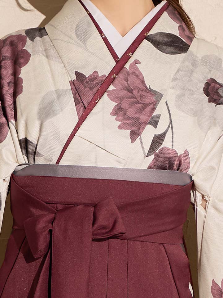 【即日発送】レッドカーネーション ベージュ二尺袖着物【卒業袴3点セット 二尺袖着物/帯/袴】[FB01]