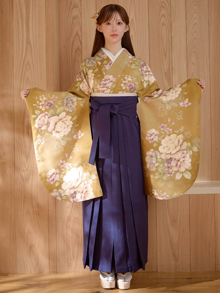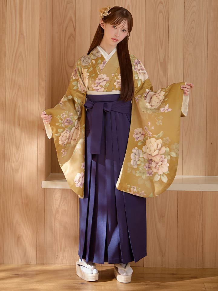 【即日発送】黄フラワーブーケ イエロー二尺袖着物【卒業袴3点セット 二尺袖着物/帯/袴】[FB01] [HR-113-ok-MUS-F-26CC-260110]