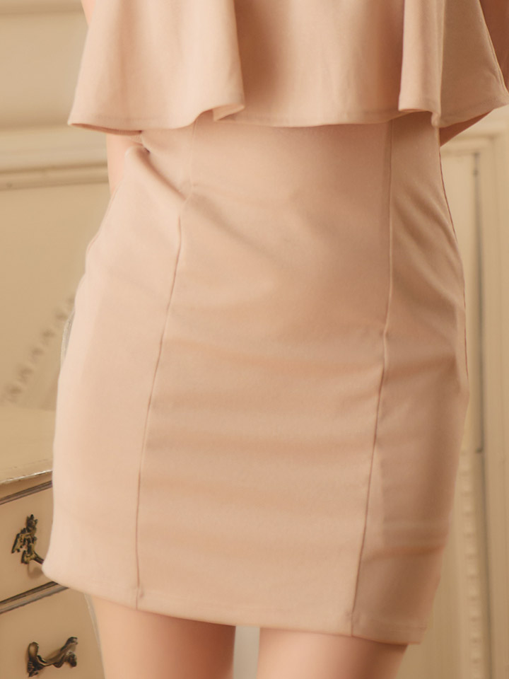 ウエストのフリルが女性らしい曲線を引き立て、スタイルアップ効果も抜群。