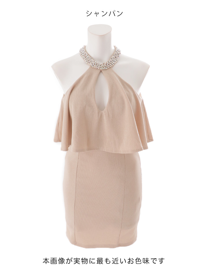 ビジューネックウエストフリルラメタイトミニドレス/キャバドレス【XS-Mサイズ/3カラー】[OF03B] 【IM】dzw