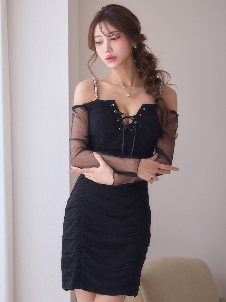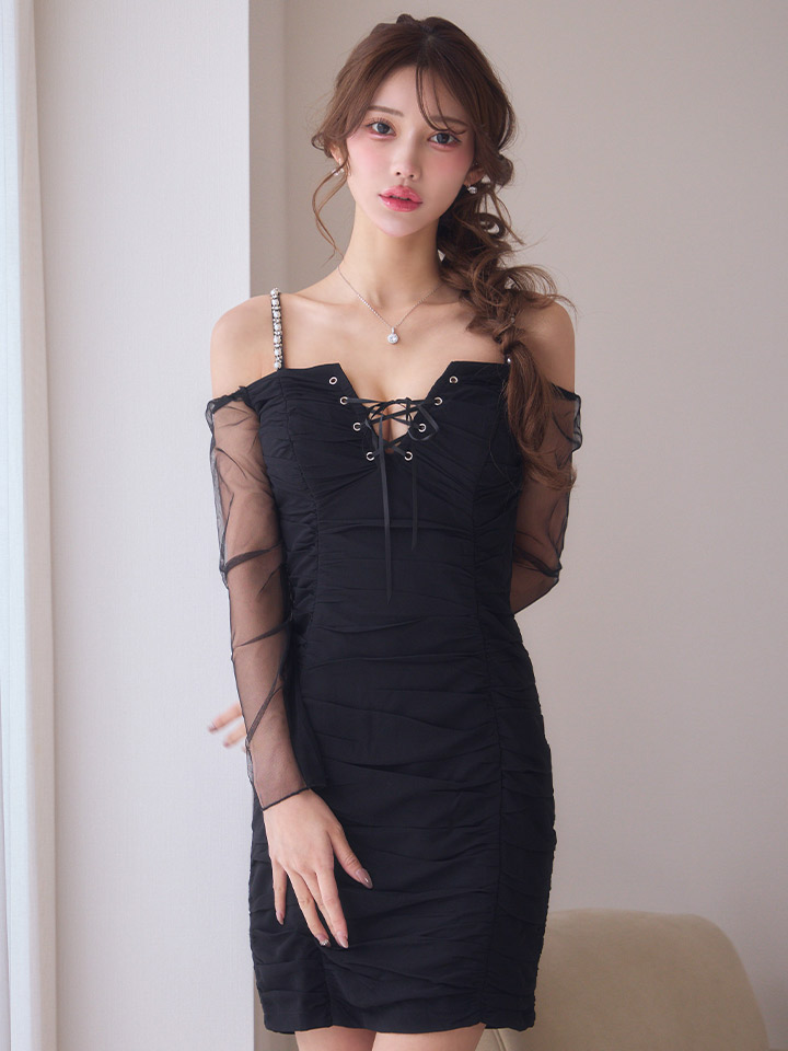 レースアップオフショルギャザータイトミニドレス/キャバドレス【S-Lサイズ/1カラー】[OF03]【YN】dzk