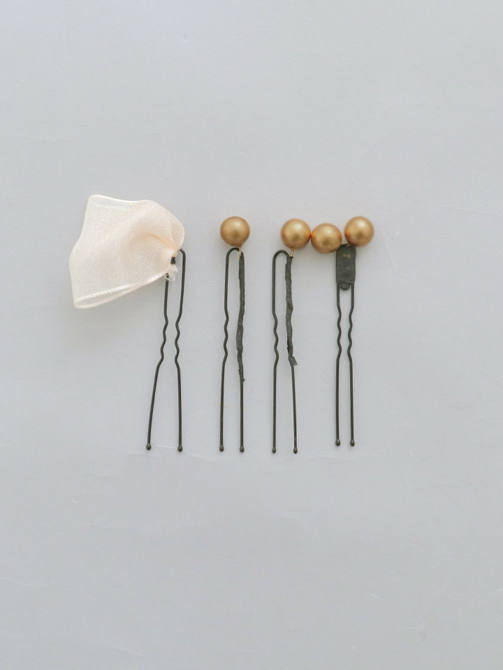 ホワイトとゴールドで統一されたドライフラワーの髪飾り♥お顔周りをパッと明るく華やかに演出してくれます。