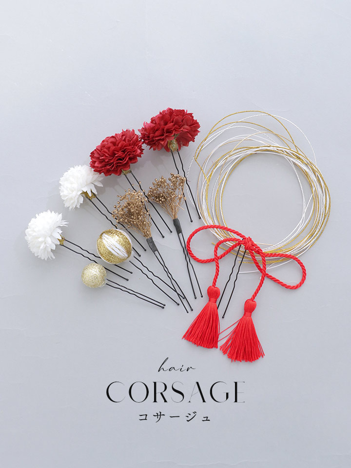 【卒業袴小物】レッド×ホワイトフラワーセット髪飾り【1カラー】