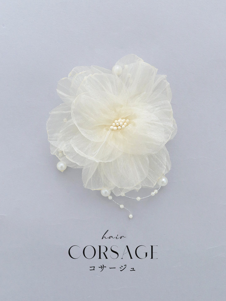 【卒業袴小物】シフォン生地パールフラワーコサージュ【1カラー】 [HKA-107-sh-W-F-260116]