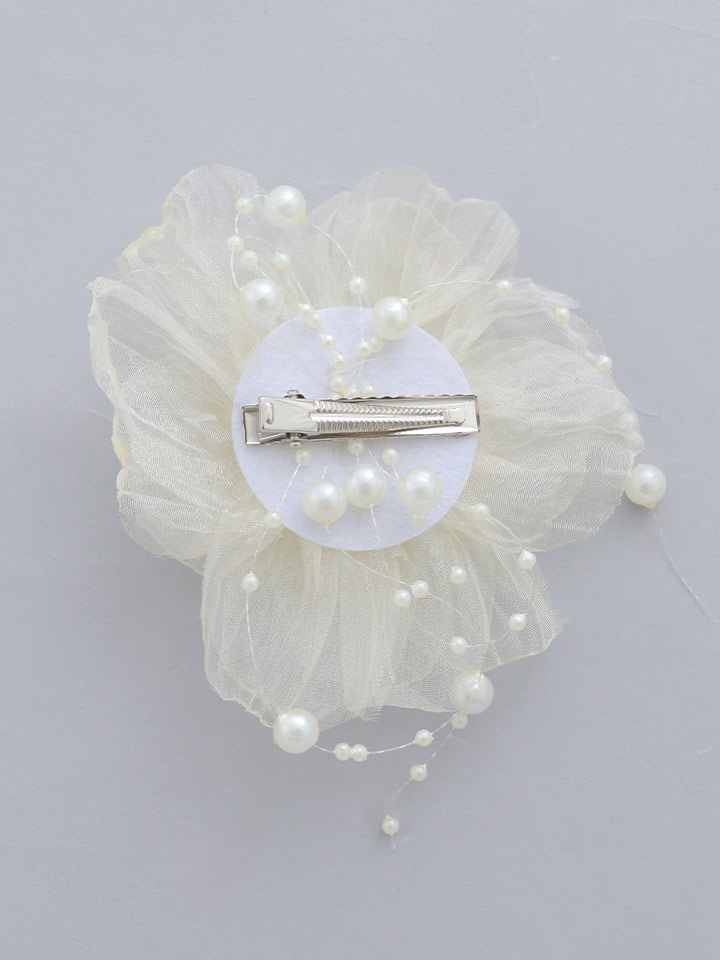 透け感のあるシフォン生地を使用した、大ぶりのフラワーヘアアクセサリークリップ式で着脱も簡単!