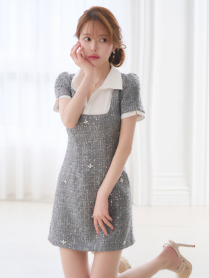 レイヤード風ツイードミニワンピース/キャバドレス【XS-XLサイズ/1カラー】[OF03] 【YN】dzwvIA
