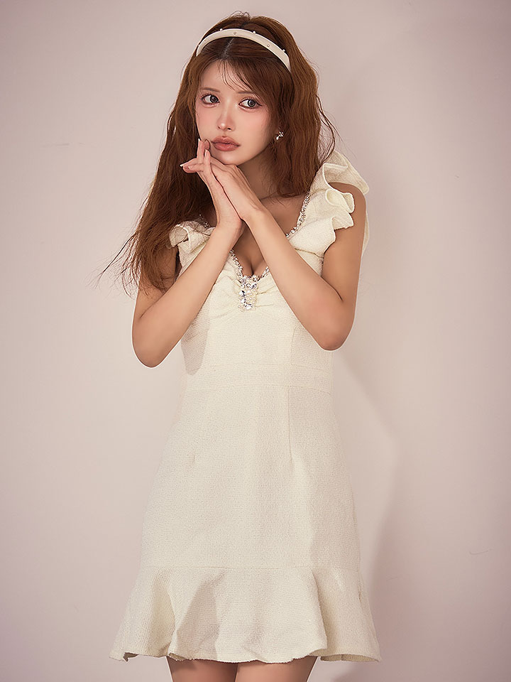 人気の胸元リボン風デザインにビジューがキラキラか可愛すぎる・・