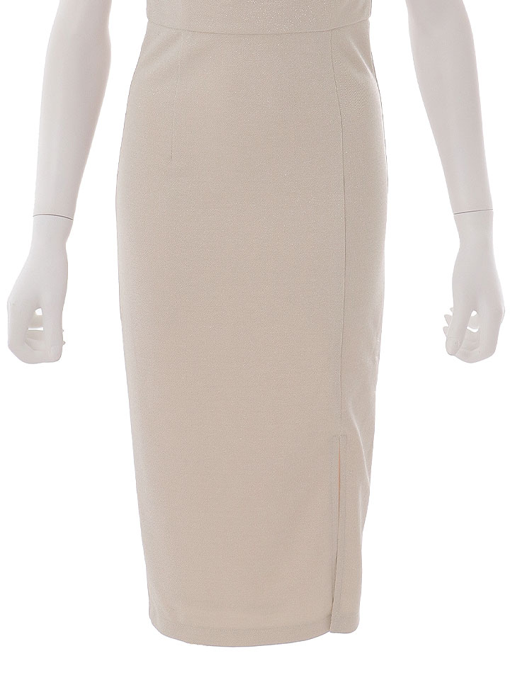 落ち着いたミディアム丈からチラリと覗く素肌が、都会的で洗練された色気を演出。