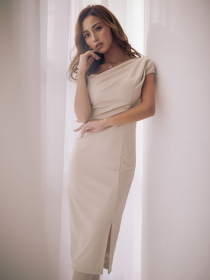 送料無料!アシメショルダースリットミディアムドレス/キャバドレス【S-Lサイズ/2カラー】【予約商品/1月下旬発送予定】[OF03]【IM】dzqFV [J-987IMdzqgFV-260117-2]