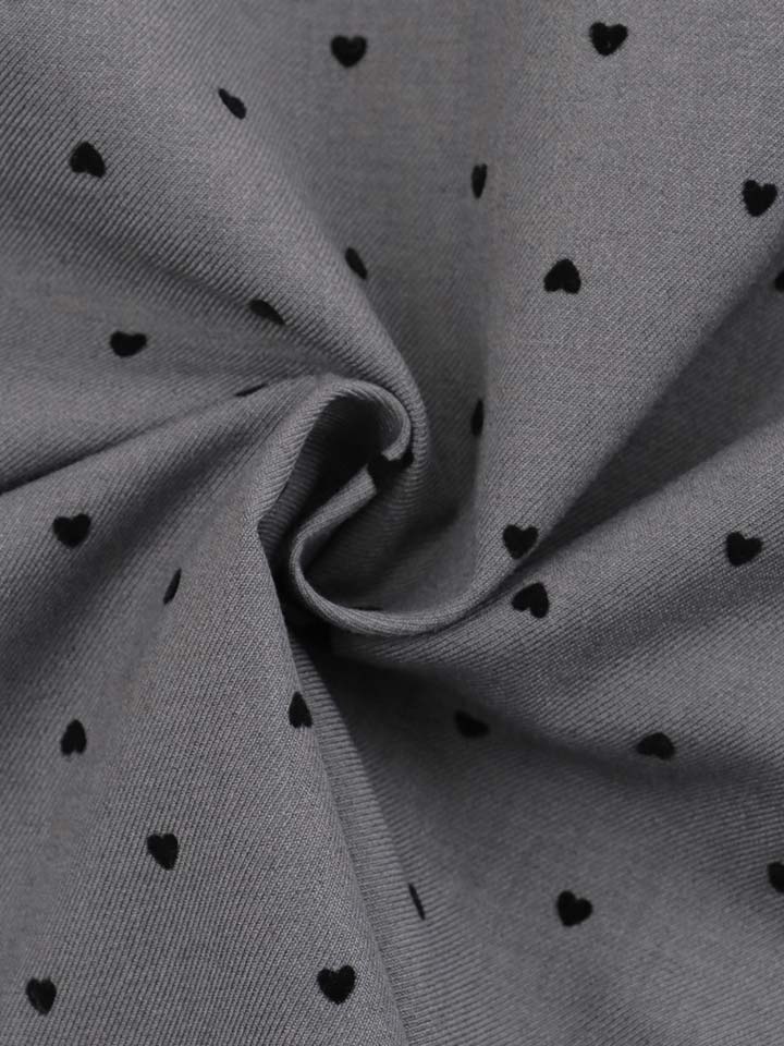 肩のリボンとハートドット柄生地で可愛らしさを演出しつつ、タイトなシルエットでスタイルアップ。
