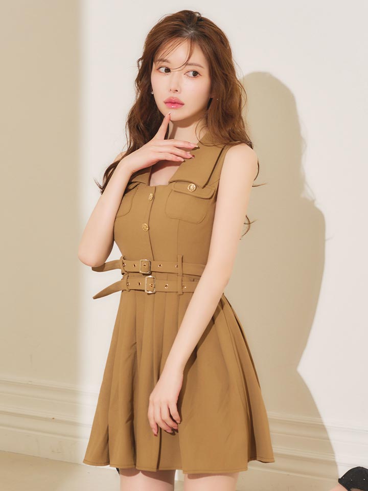 送料無料!トレンチダブルベルトプリーツミニワンピース/キャバドレス【XS-Lサイズ/1カラー】[OF01] 【SB】IA [3480SBIA-260120-1]