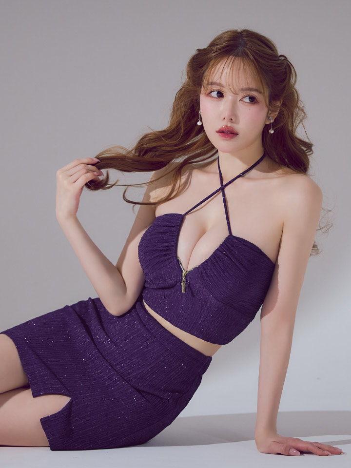 胸元はクロスデザインで程よくセクシーさをプラスし、色気と上品さを兼ね備えた一着です。