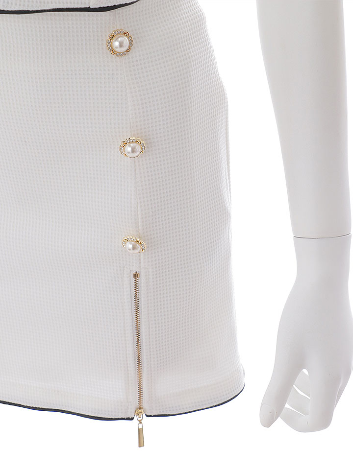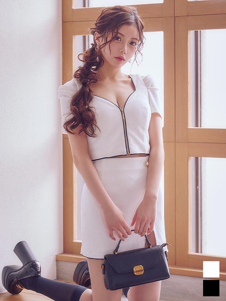 胸元とスカートのジップデザインが色っぽさと可愛さを両立。