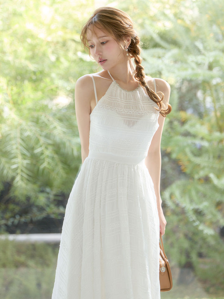 アメスリデザインがトレンド感を演出するフレアワンピース。