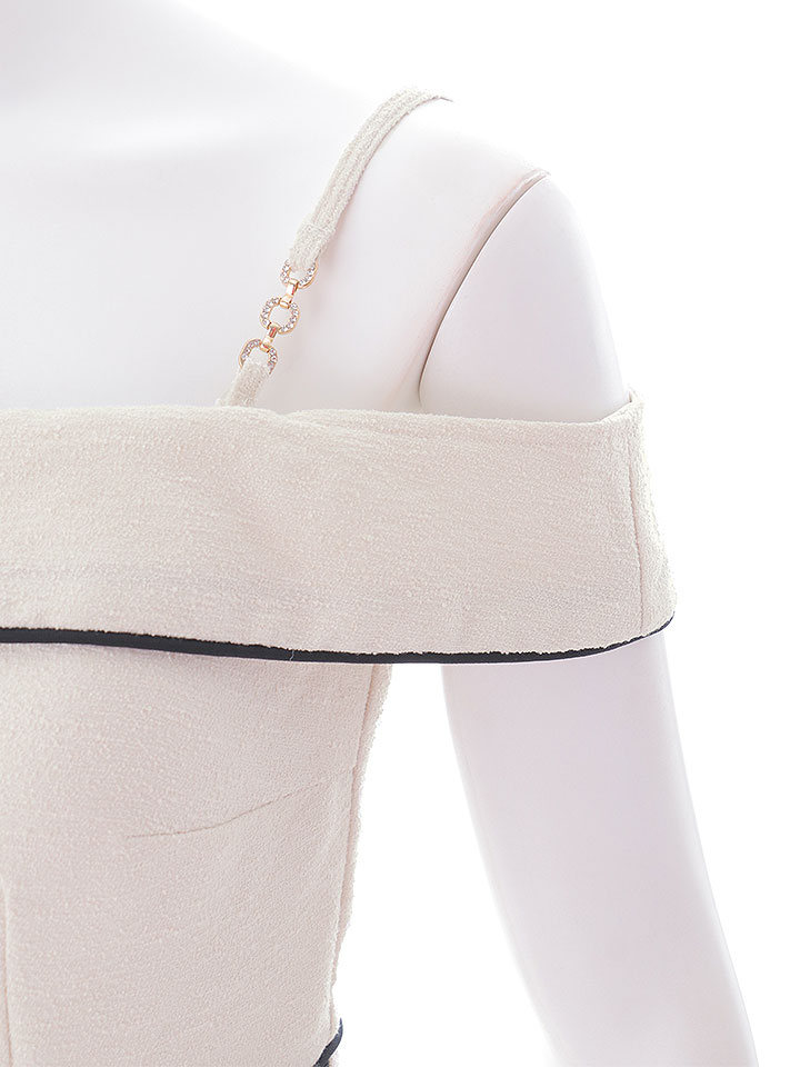キャミソールにオフショルダーデザインを重ねた、レイヤード風が今っぽい一枚。