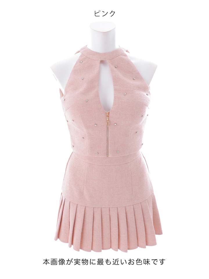 フロントジップアメスリビジューセットアップミニドレス/キャバドレス【XS-Mサイズ/1カラー】[OF03]【YN】dzwvAG