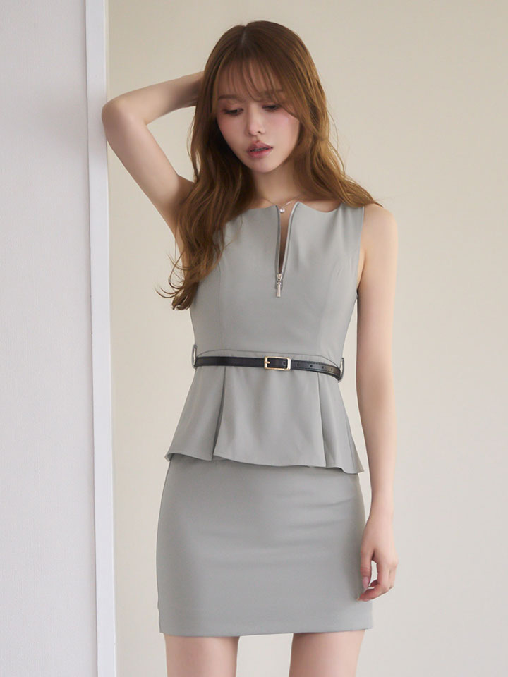 ペプラムデザインがウエストラインをきれいに見せてくれるミニドレス。