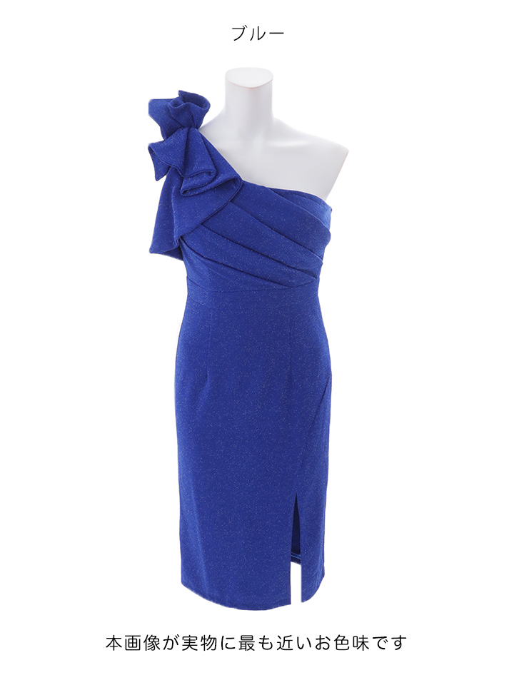 ギャザーワンショルラメストレッチミディアムドレス/キャバドレス【S-Mサイズ/2カラー】[OF03]【YN】dzwFV
