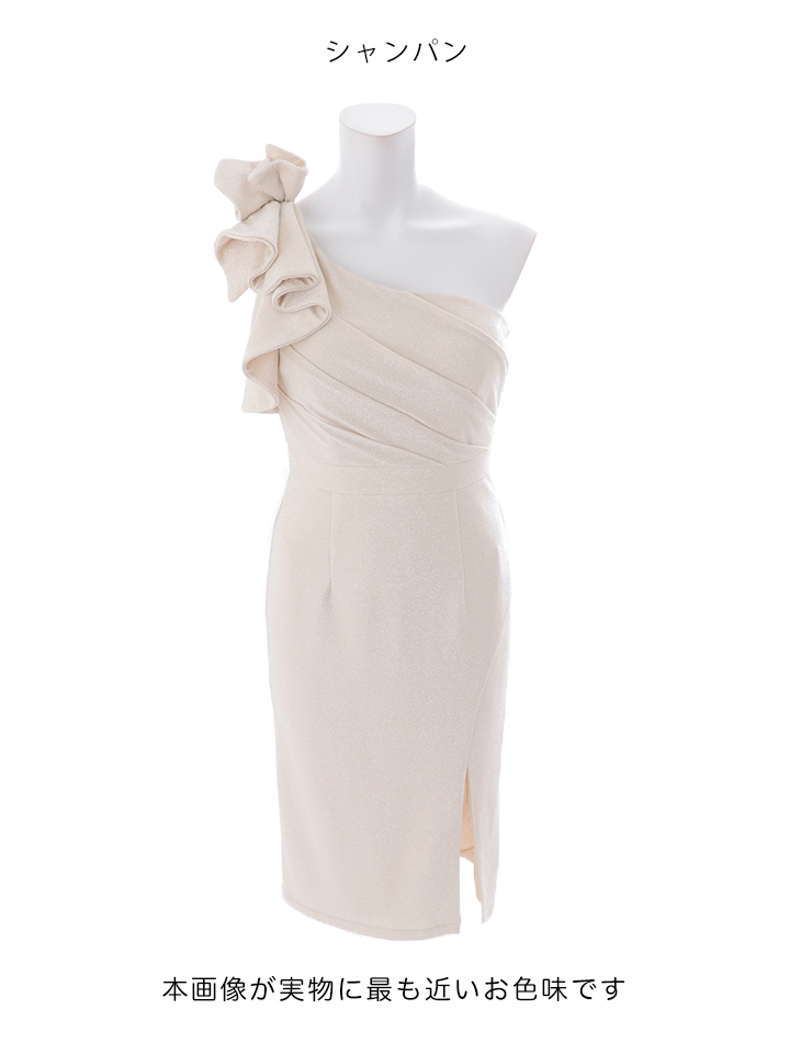 ギャザーワンショルラメストレッチミディアムドレス/キャバドレス【S-Mサイズ/2カラー】[OF03]【YN】dzwFV [5884YNdzwFV-260220-1]
